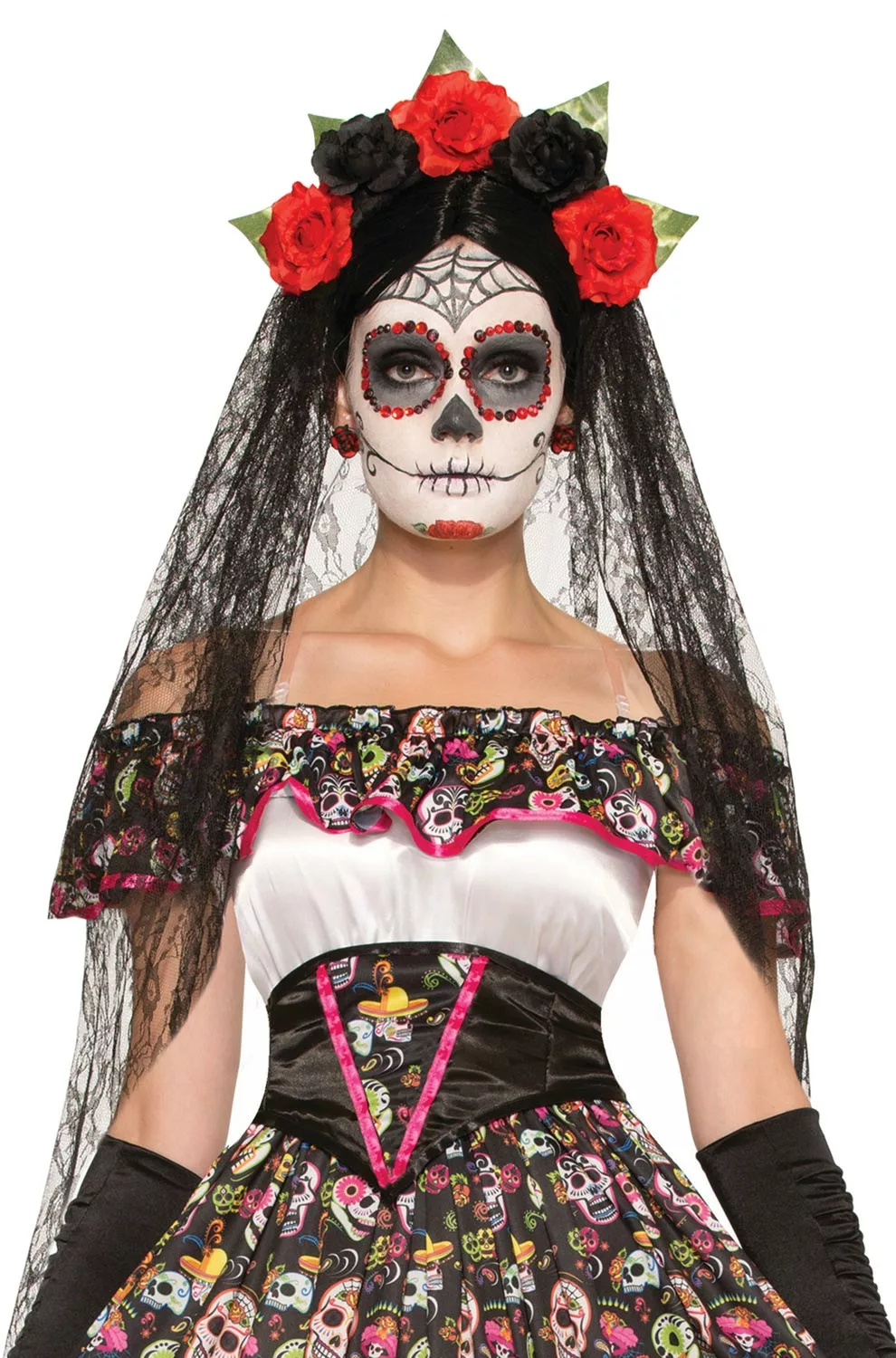 Your Dia de los Muertos costume isn’t complete with out the perfect finishing touch. Be sure to add this Day of the Dead Veiled Headband so that you’ll have a completed look.