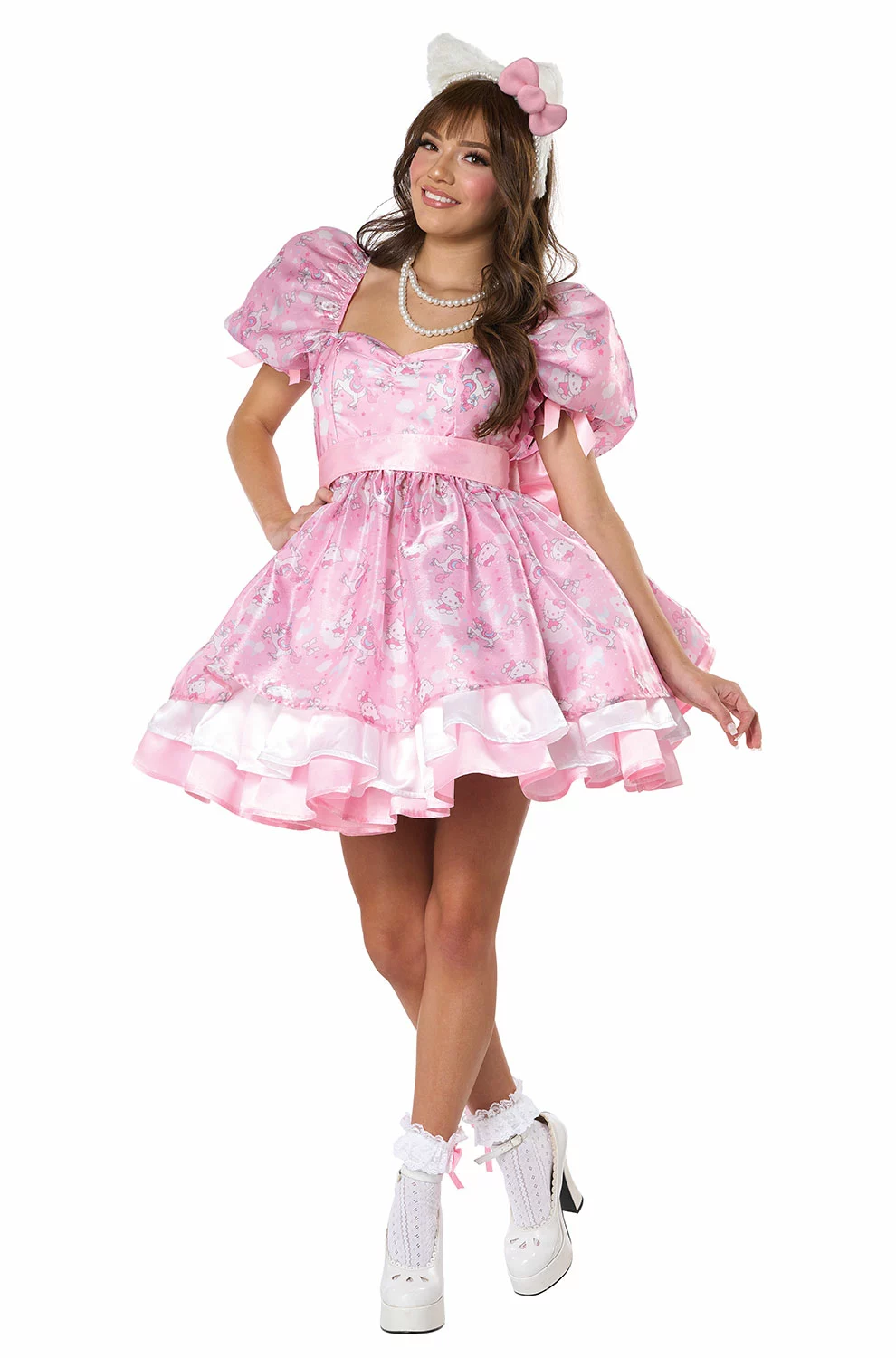 Add a touch of playful whimsy to your wardrobe with this costume. Whether you’re a fan of Hello Kitty, unicorns, or just love cute and playful fashion, the Hello Kitty Unicorn Dreams Costume checks all the boxes! The costume features a pastel pink mini dress, complete with a poofy pettiskirt and matching accessories. With its fashion forward design and attention to detail, this costume will have you feeling like a magical creature from a dream.