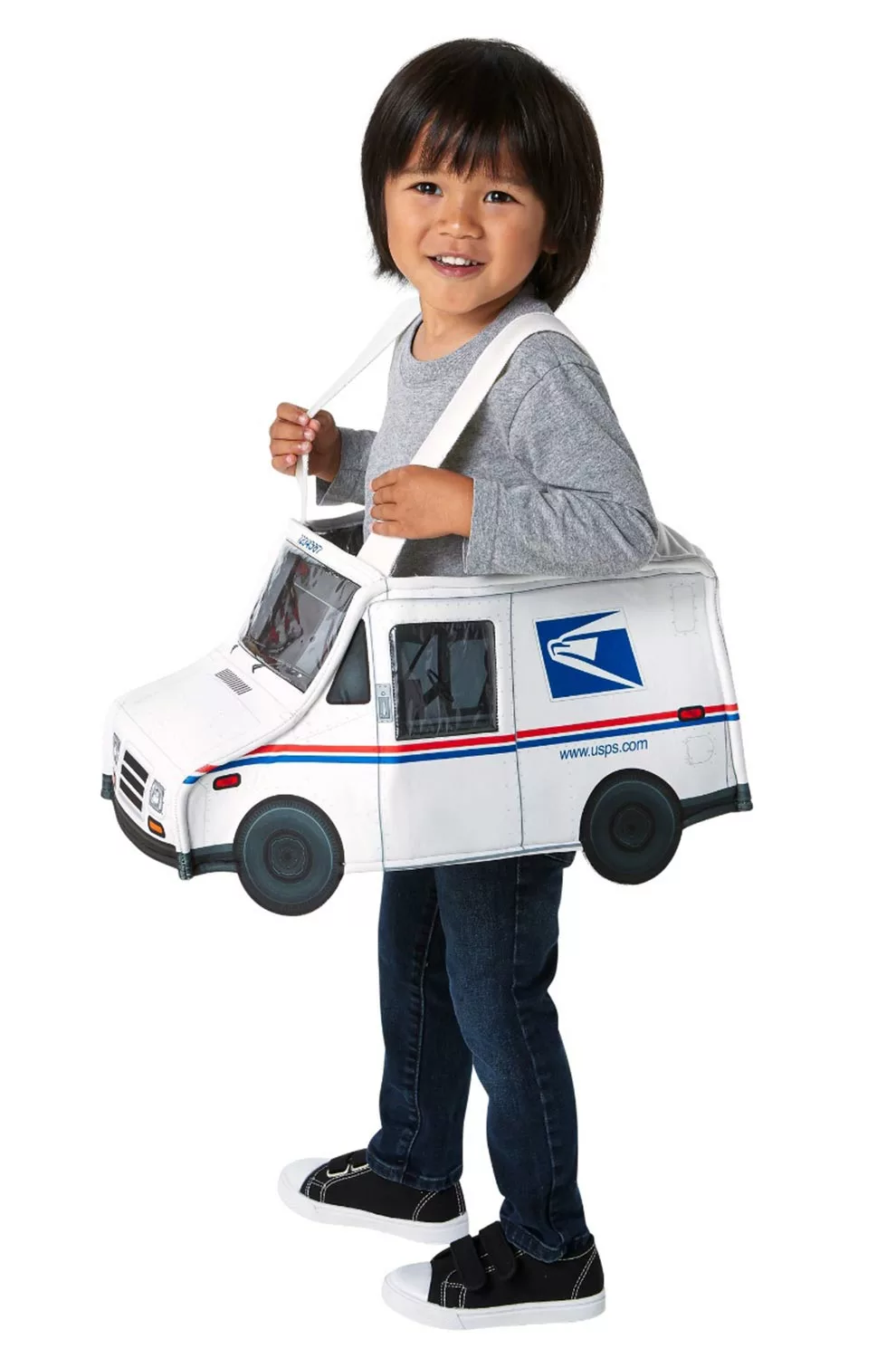 Get ready to deliver some serious cuteness with the USPS Postal Truck Toddler Costume! This foam costume is like a mini version of the iconic USPS delivery truck, complete with the familiar eagle logo and bright blue color. Your little one will feel like a real mail carrier as they zoom around the neighborhood, delivering letters (or maybe just some treats) to all their friends. So whether your toddler is delivering mail or just delivering smiles, the USPS Postal Truck Toddler Costume is the perfect way to show off their love of mail carriers and all things USPS!
