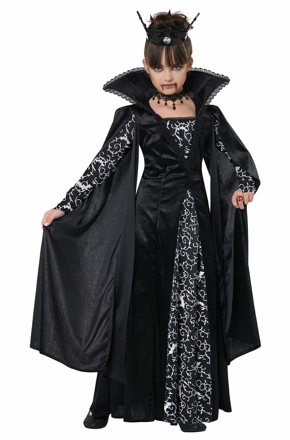 Looking for a costume that will make your child stand out this Halloween? Look no further than the Vampire Queen Child Costume. This stunning costume is perfect for kids who want to add a spooky and stylish touch to their Halloween attire. With its elegant design, high-quality materials, and attention to detail, this costume is sure to impress and delight anyone who sees it. The costume features a long black dress with a stand-up collar and an elegant crown, making your child look like a true queen of the night!